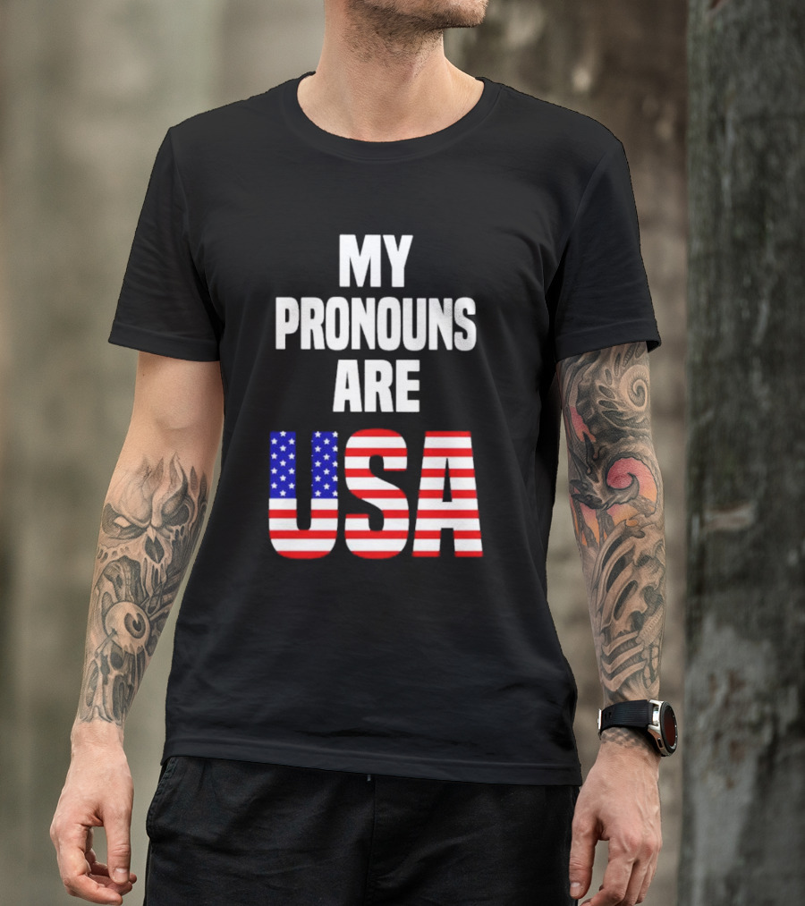 My Pronouns Are USA Flag Text Online Merchandise T-Shirt